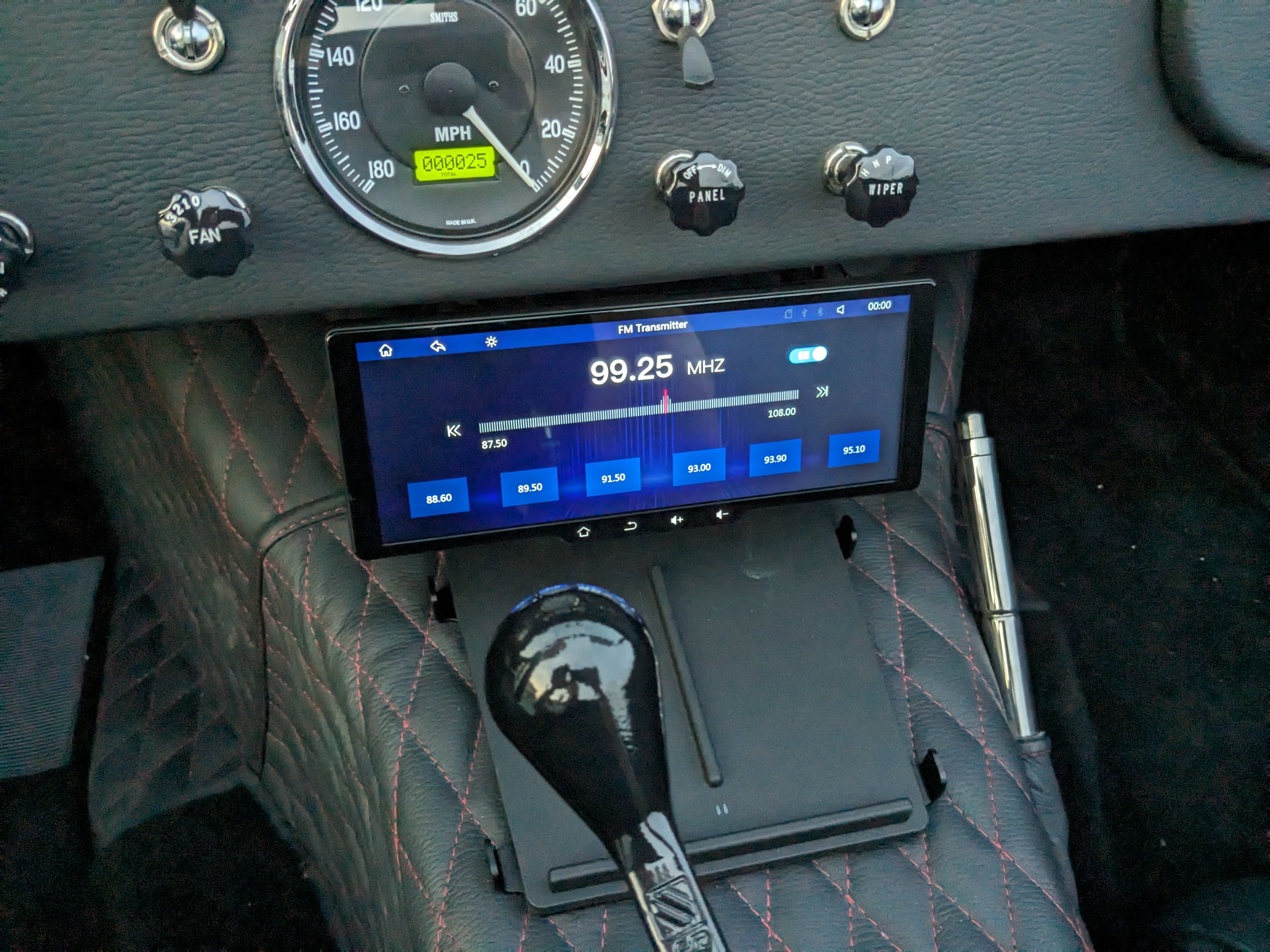 Supports bluetooth, forward and backup camera displays. Can include wireless chargers and cameras.