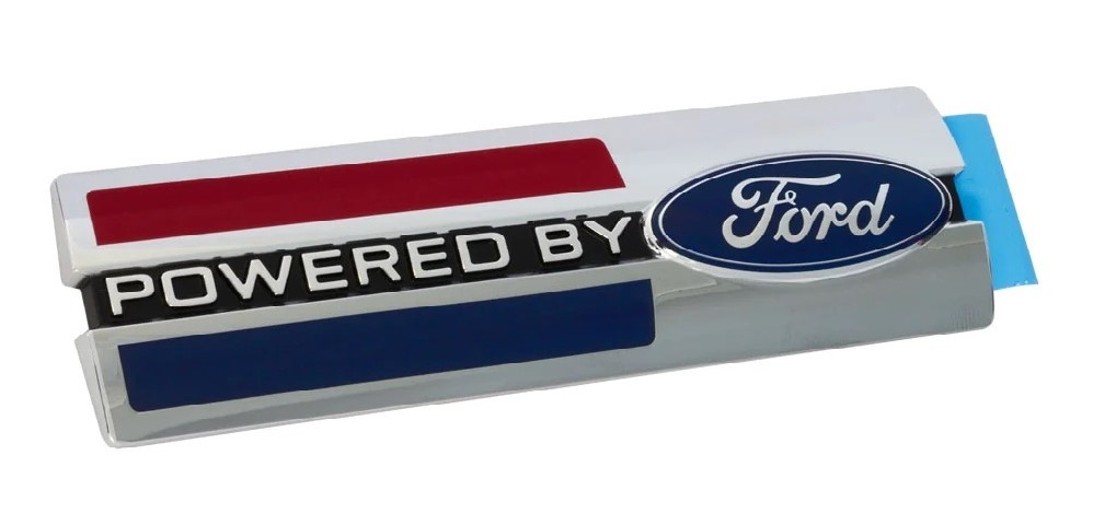 Chrome plated 3-dimension nameplate with red, black and blue accents